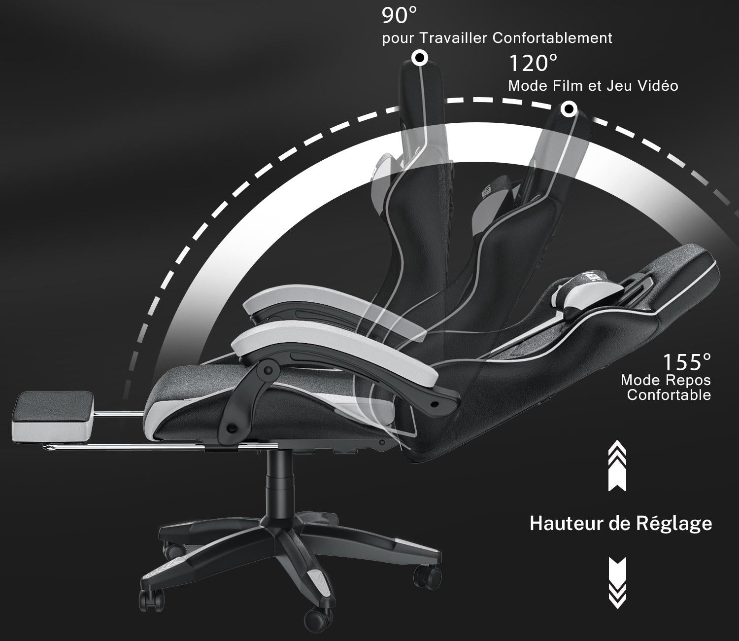 - Hauteur Réglable : 123CM - 134CM (Avec Repose-pieds); 117CM - 127CM (Avec des Lumières LED)
