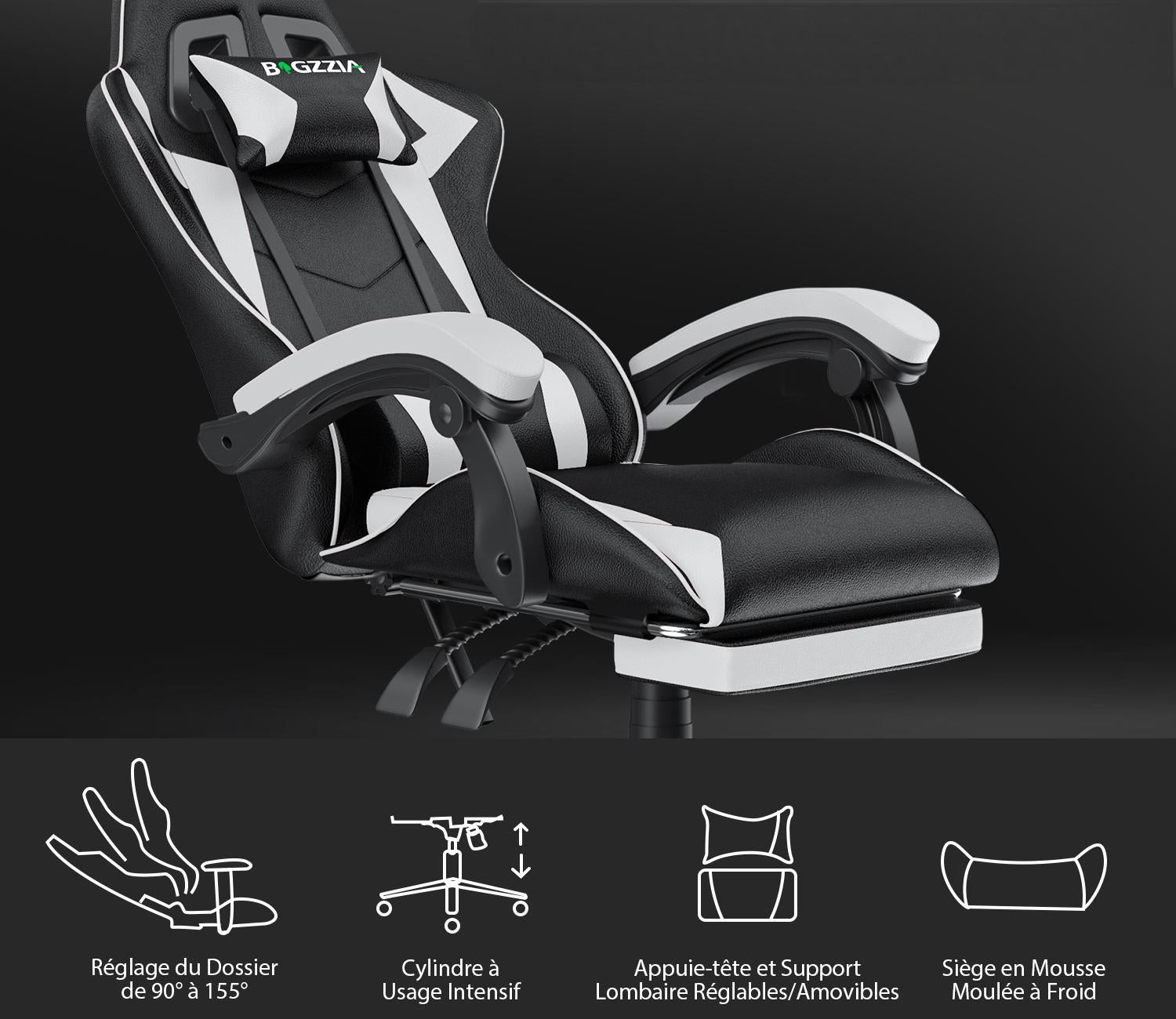 Chaise de Jeu Ergonomique Chaise Pivotante Inclinable à 155° avec Appui-tête, Support Lombaire Chaise de Bureau en Cuir PU